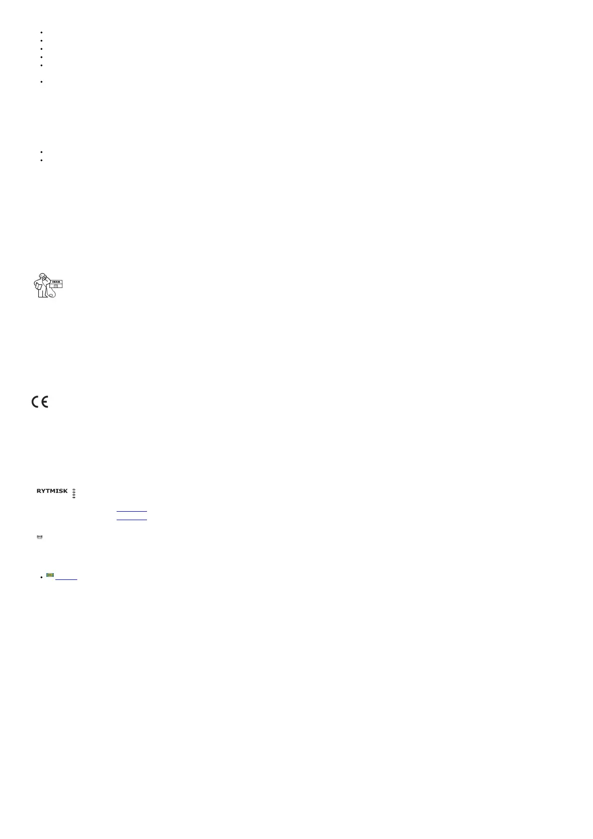 Please refer o the last page of this manual for the full list of IKEA appointed contacts and relative national phone numbers.