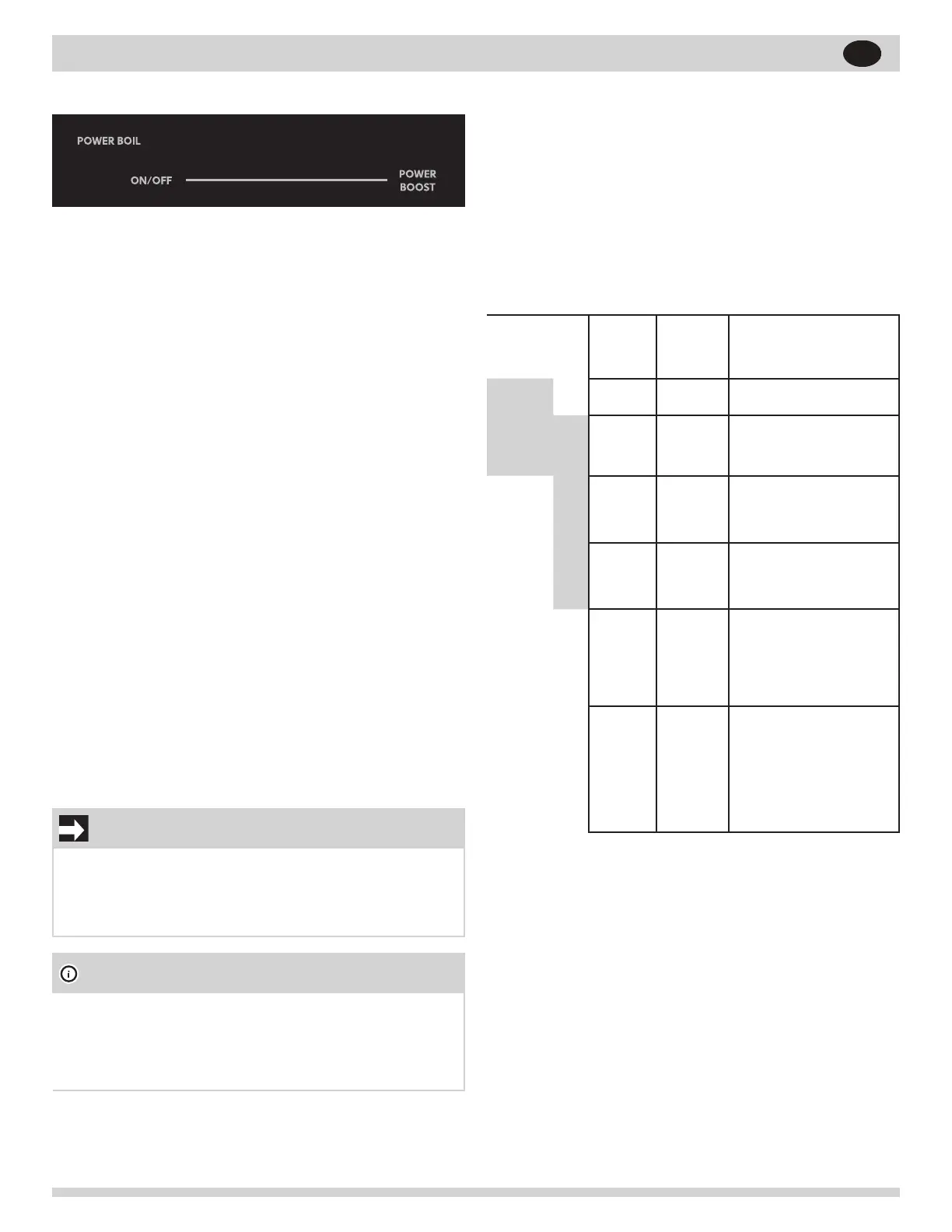 • Le réglage d’ébullition rapide (Power Boil) P peut être activé