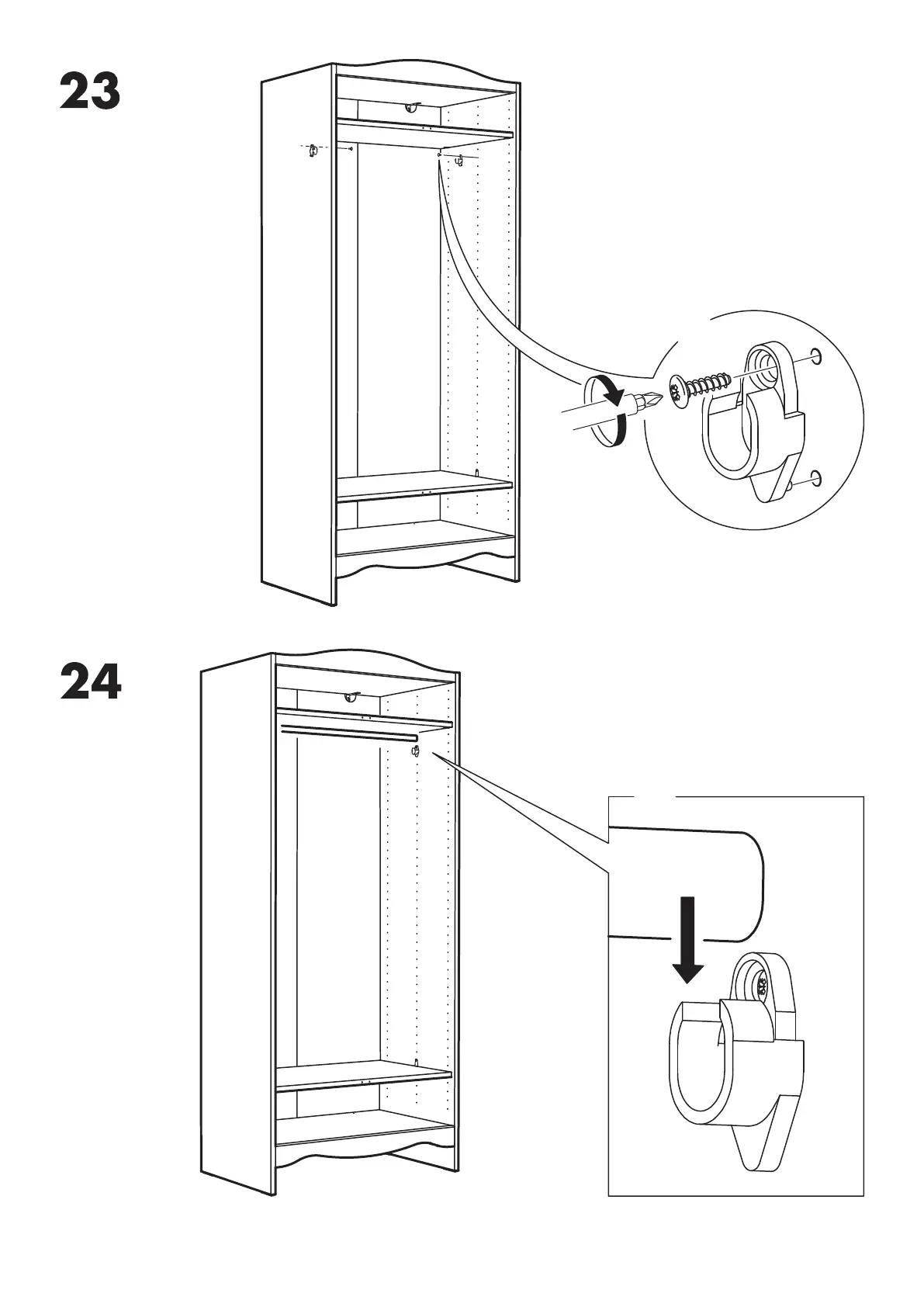 IKEA SMAGORA - Door Assembly and Adjustment; Step 23: Attach Hinges to Doors; Step 24: Mount Doors to Unit