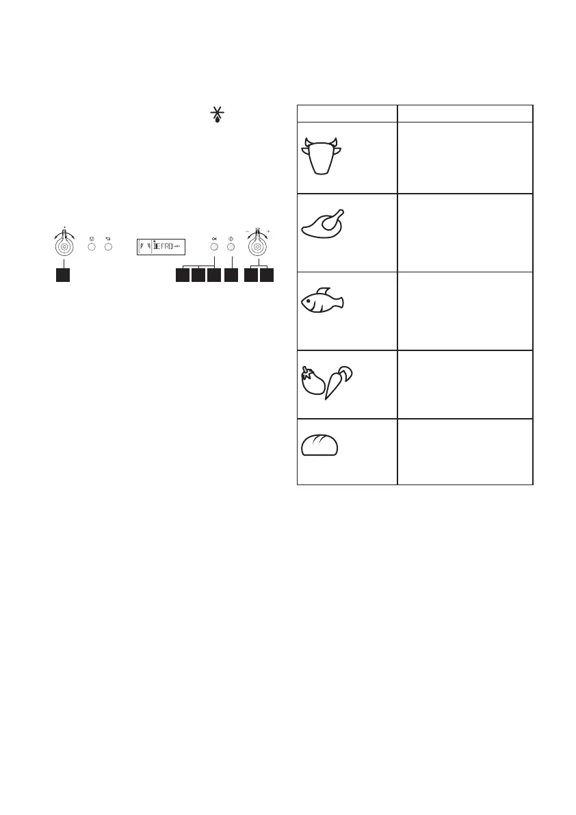 Fleisch, Geügel, Fisch, Gemüse und Brot.
