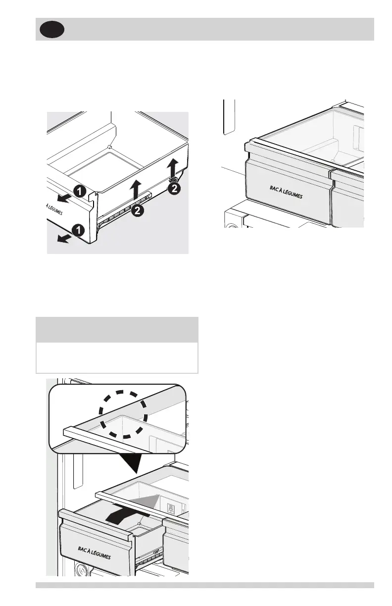 1. Tirer le bac à légumes jusqu’à ce qu’il