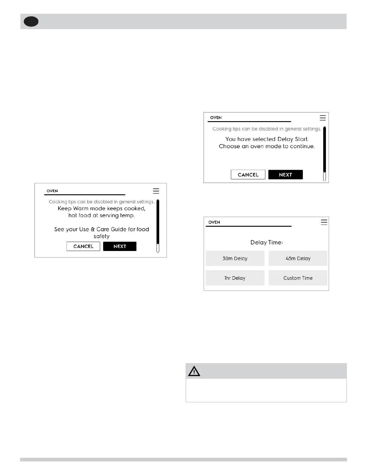 When the Delay Start time is reached, the oven will