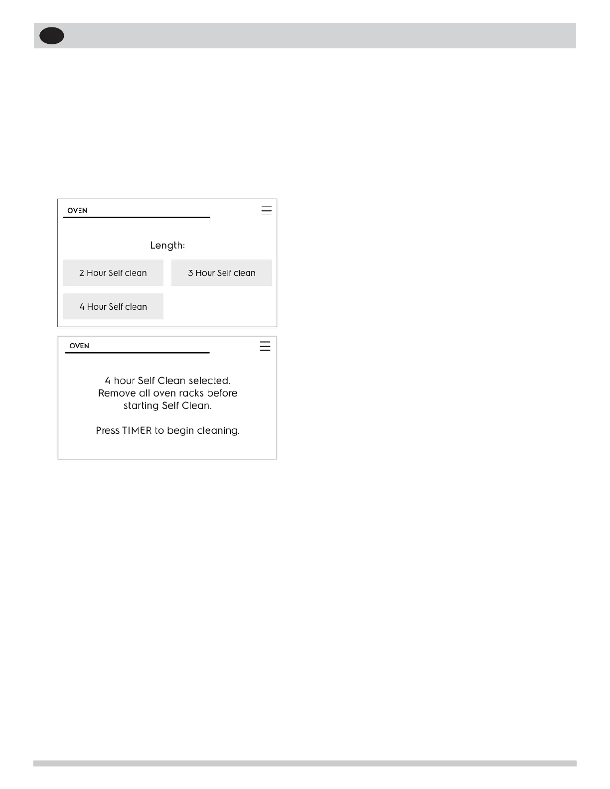 3. Touch Self Clean and select 2 hour, 3 hour, or 4