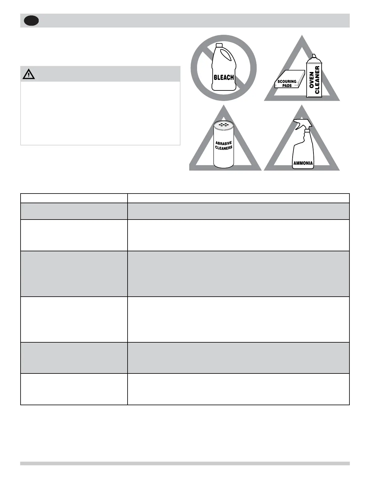 clean cloth. Do not use cleaners containing abrasives, chlorides, chlo-