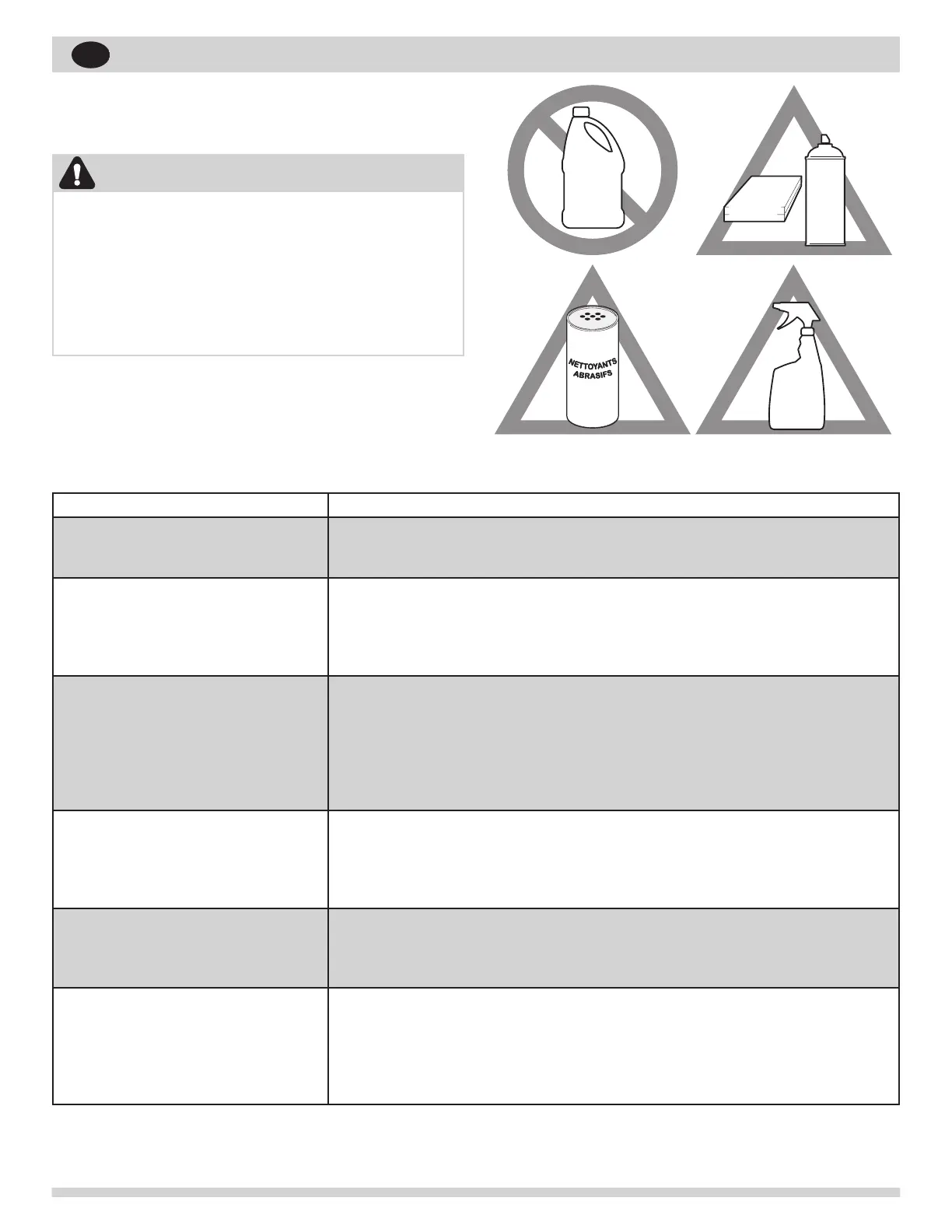 doux ou une solution à base de 50 % de vinaigre et d'eau. Ne pas vaporiser de