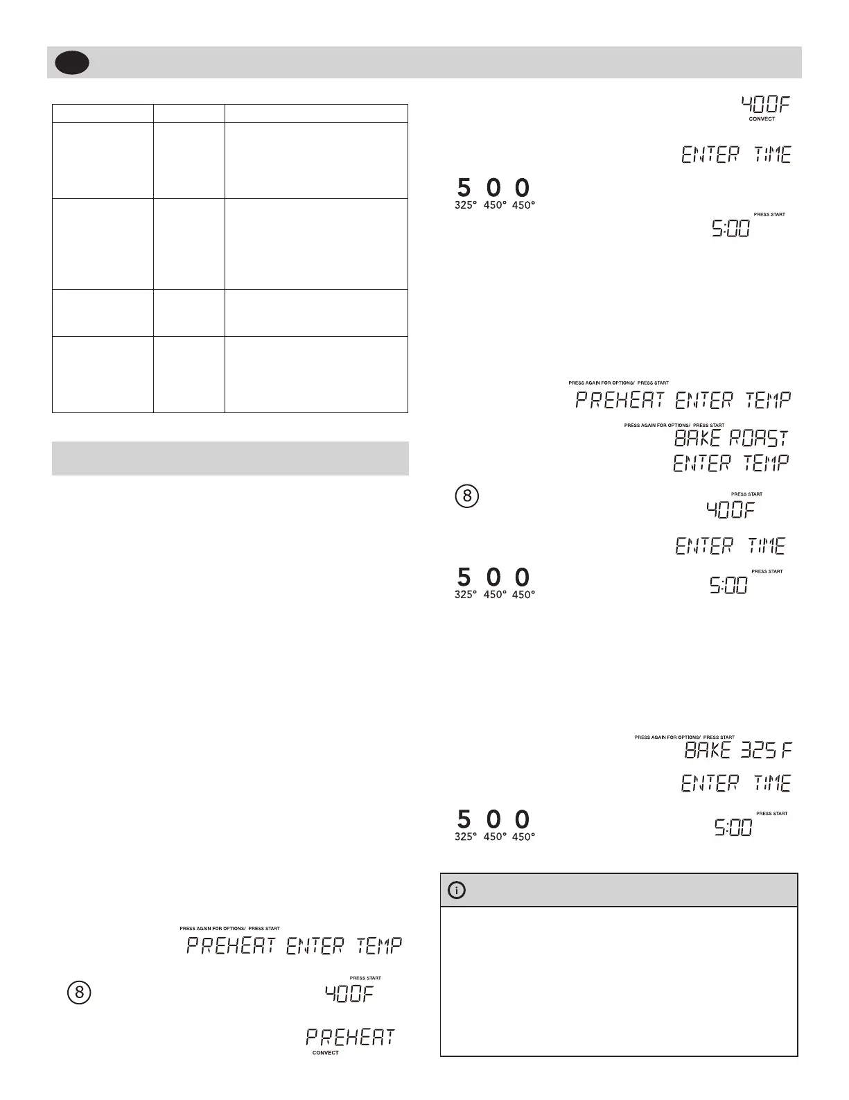 preheated temp. display.