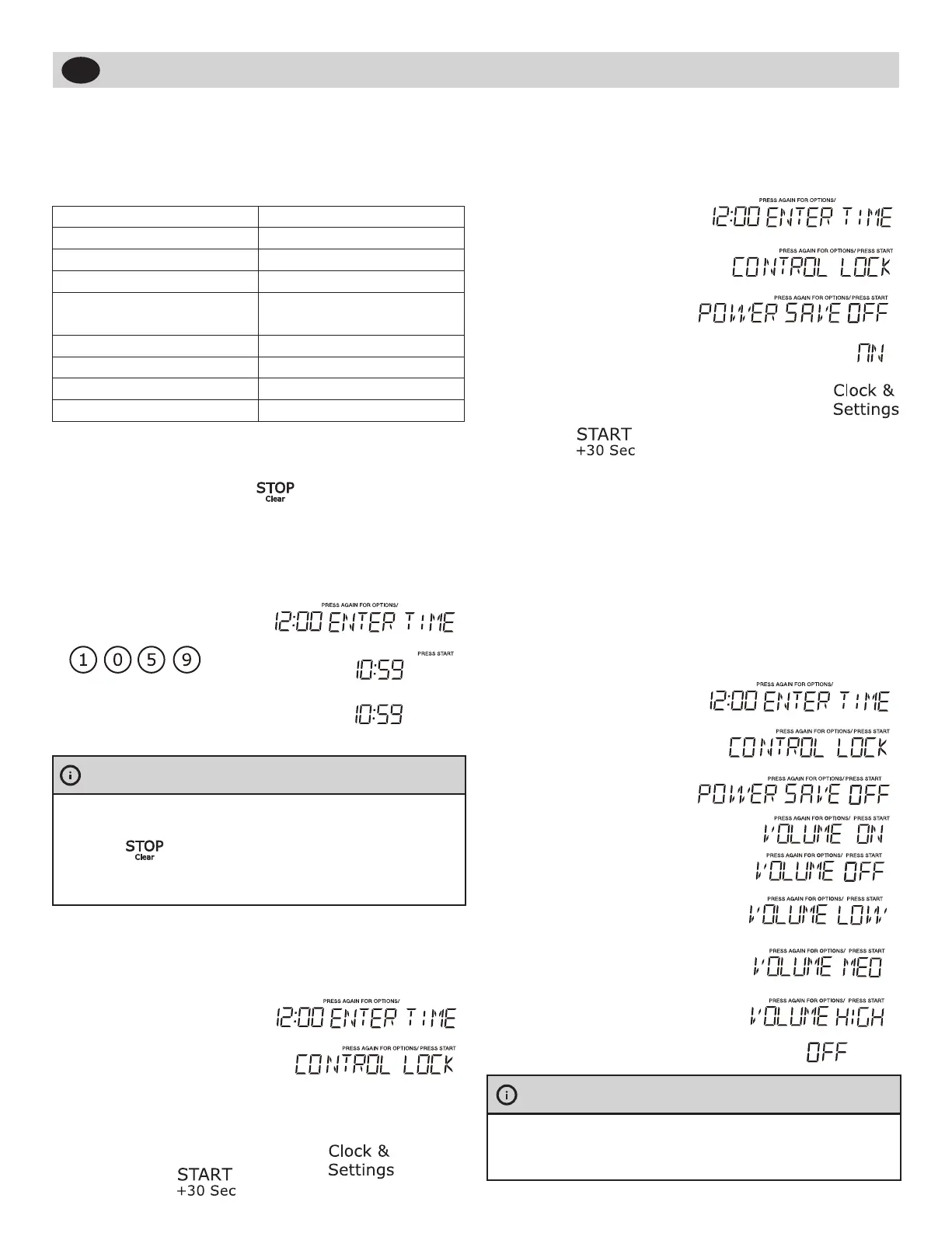 tabla que muestra los distintos ajustes. Pulse la tecla Clock &