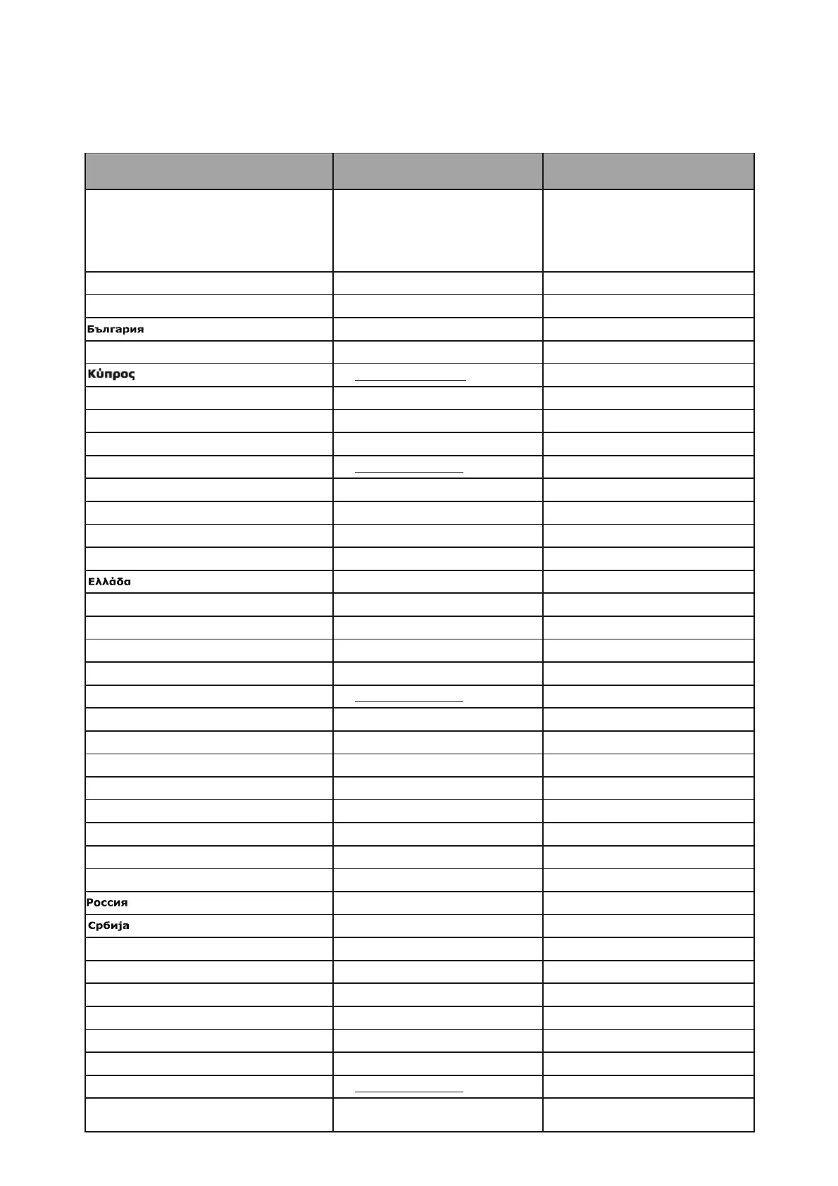 Country name in local languages Telephone number Opening times