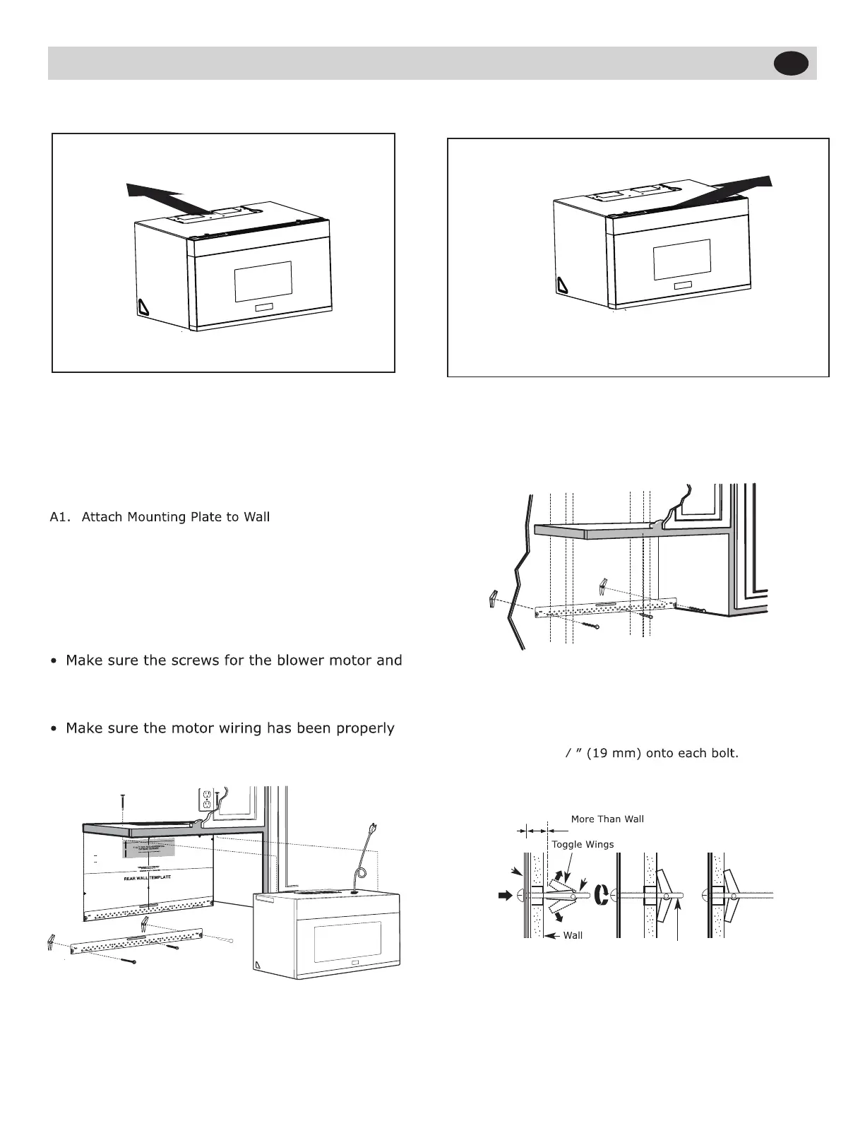 A1. ATTACH THE MOUNTING PLATE TO THE WALL