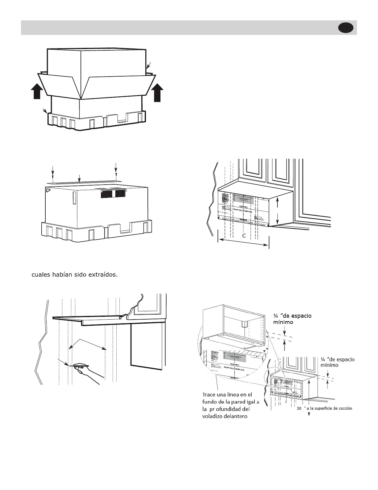 la pared trasera y para la instalación. Vuelva