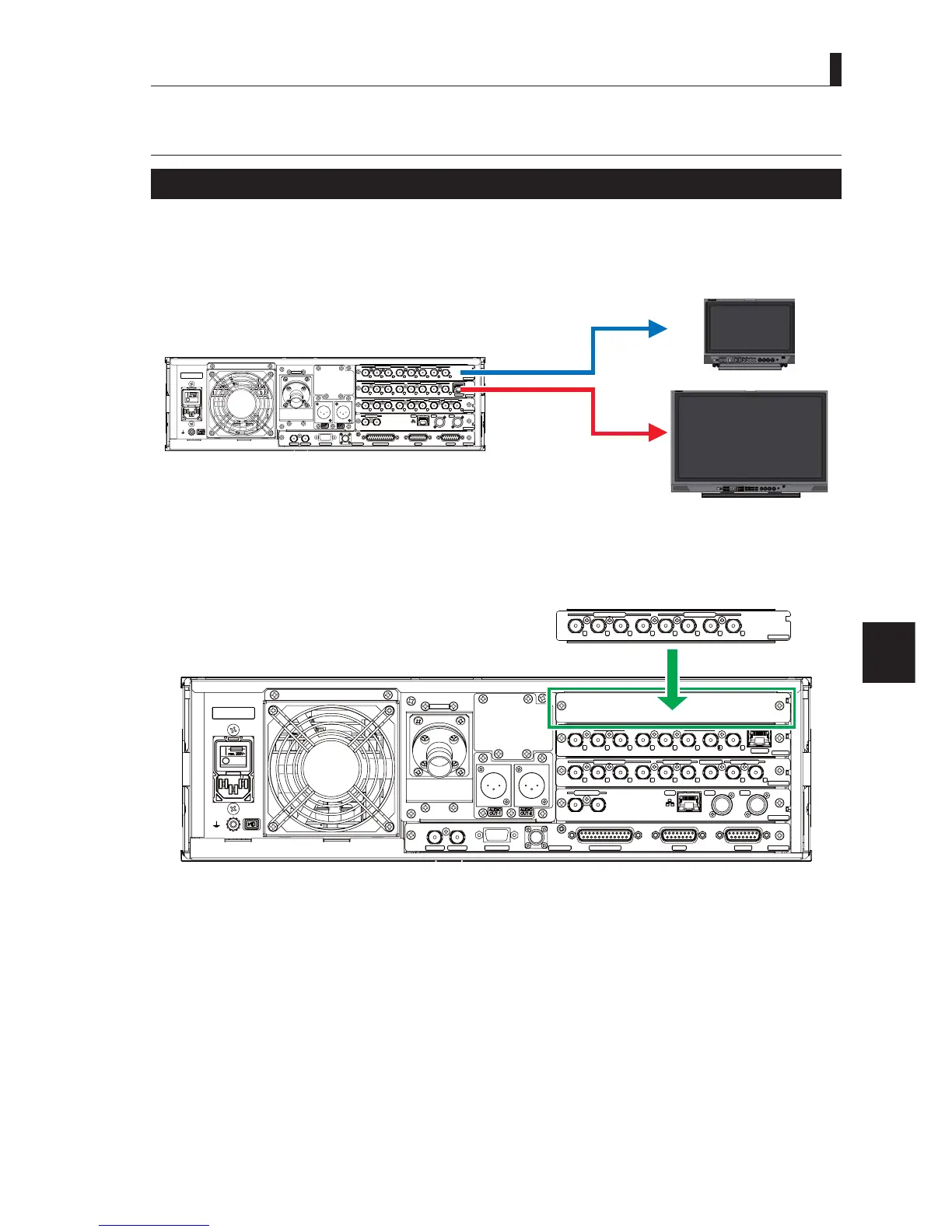 Install the front module [HD_VP] and the rear module [HD_OUT] in the CCU-430 for the implementation of the “HD SIMUL”