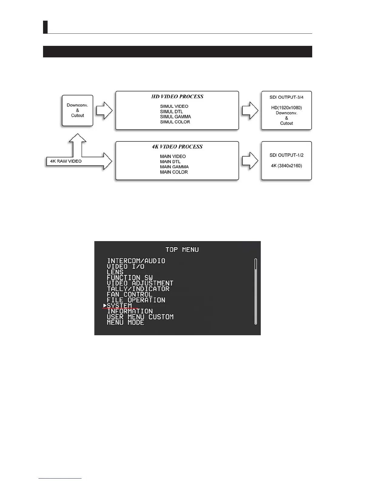 When the "HD SIMUL" option is installed, independent image processing for the HD system and the 4K system becomes possible