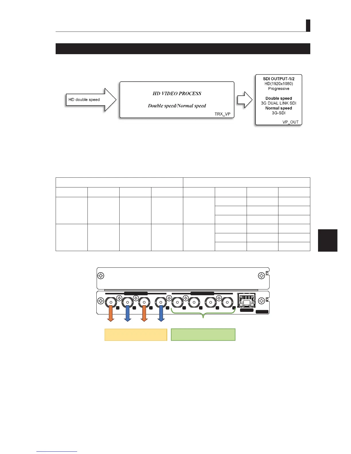 The double speed output or normal speed output can be selected for the output of SDI OUTPUT-1 or SDI OUTPUT-2. The double