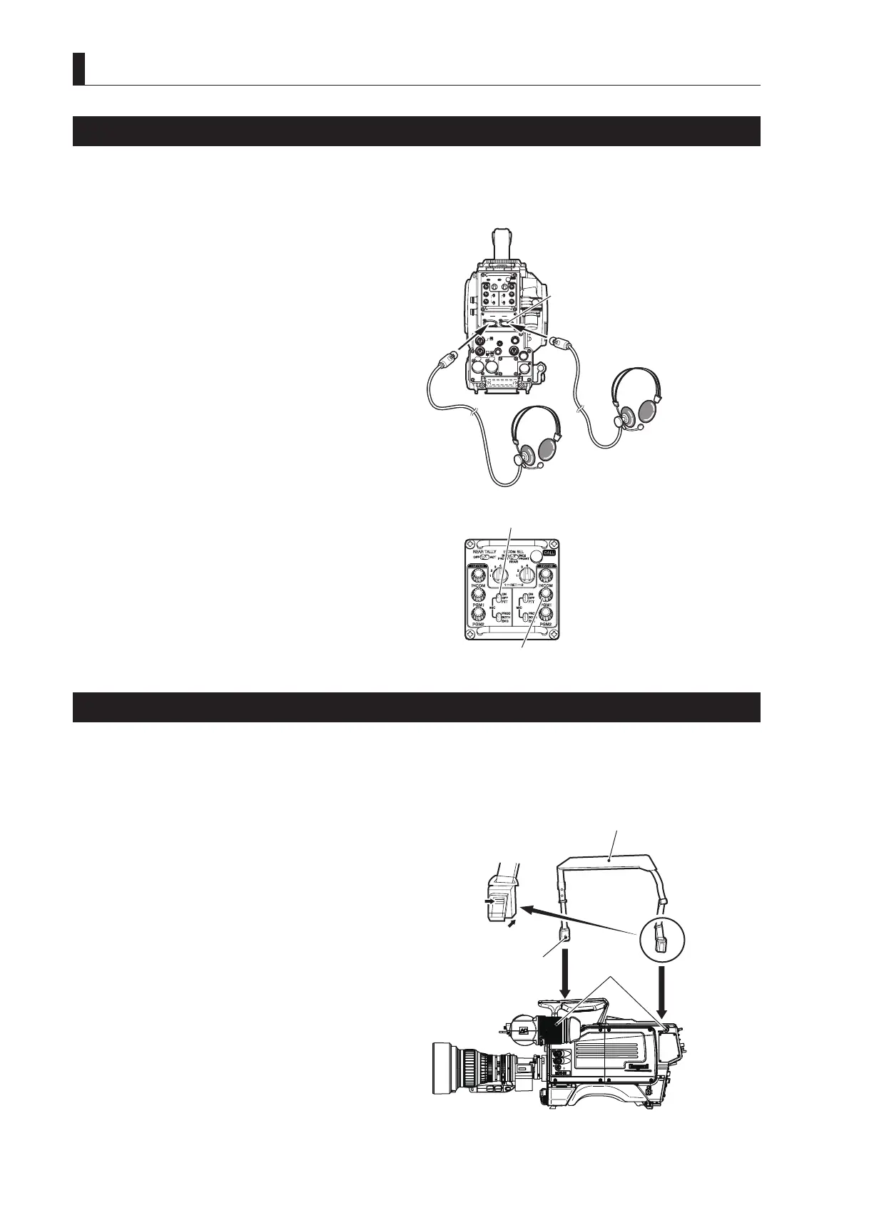 Two intercom headsets (1 and 2) can be connected to the HDK-99. Please select the headset connector depending on the use. This