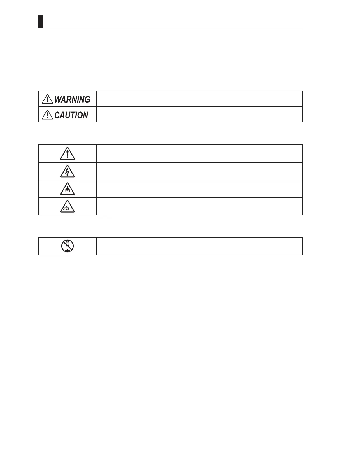 The following symbols are used to indicate the expected injury or hazards when you do not follow