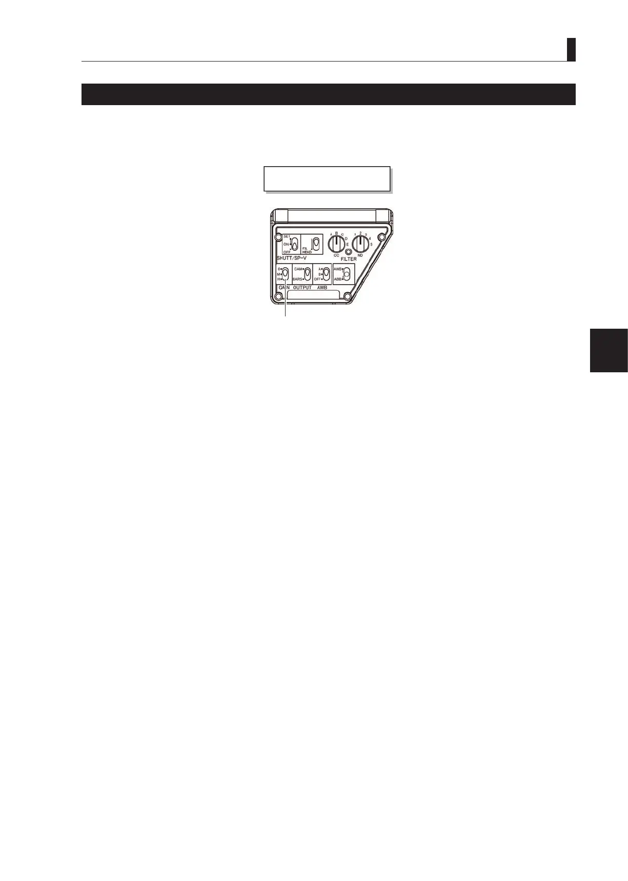 1 Use the GAIN SELECT switch on the right side of the camera to switch the setting according to the shooting