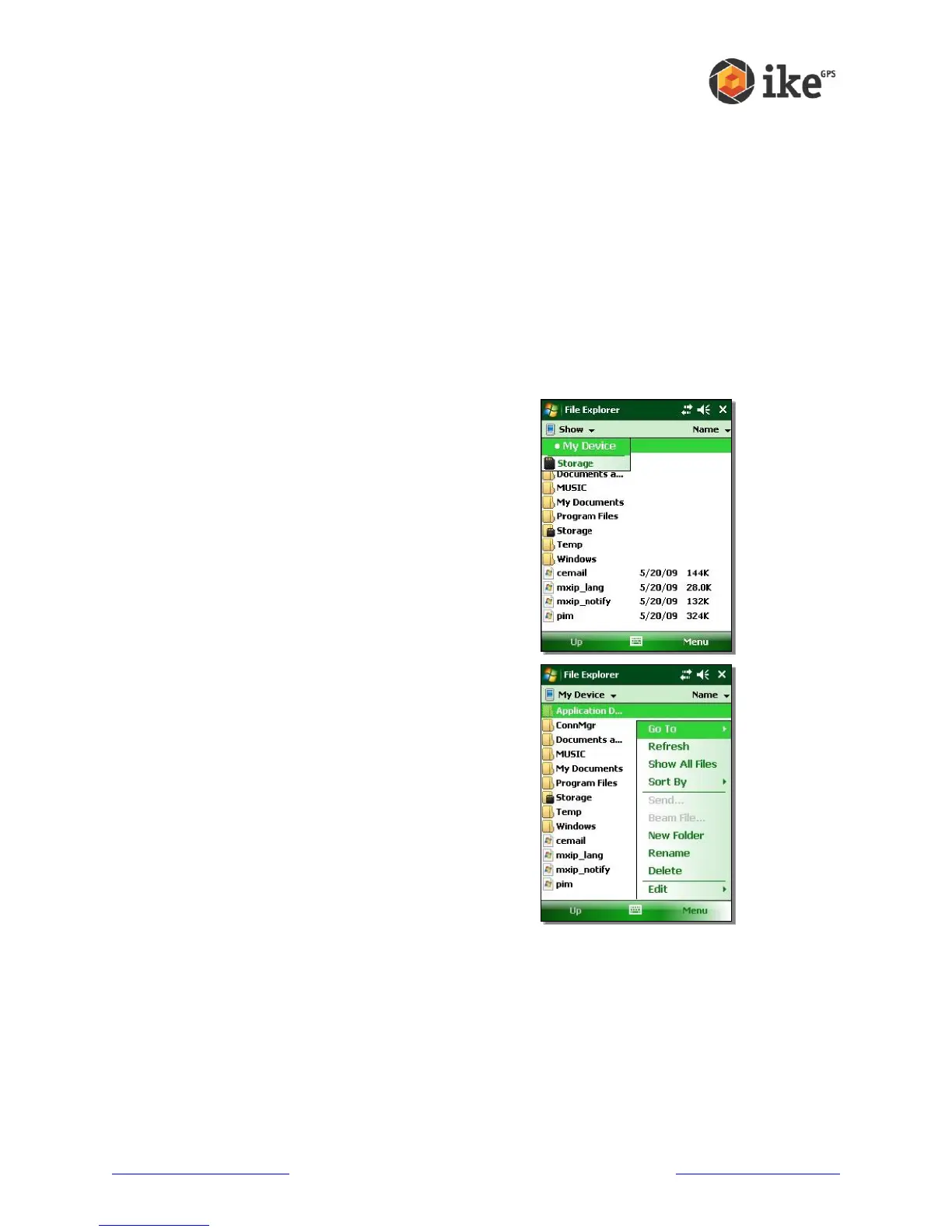 Tap Start > Programs > File Explorer. The File Explore window appears.