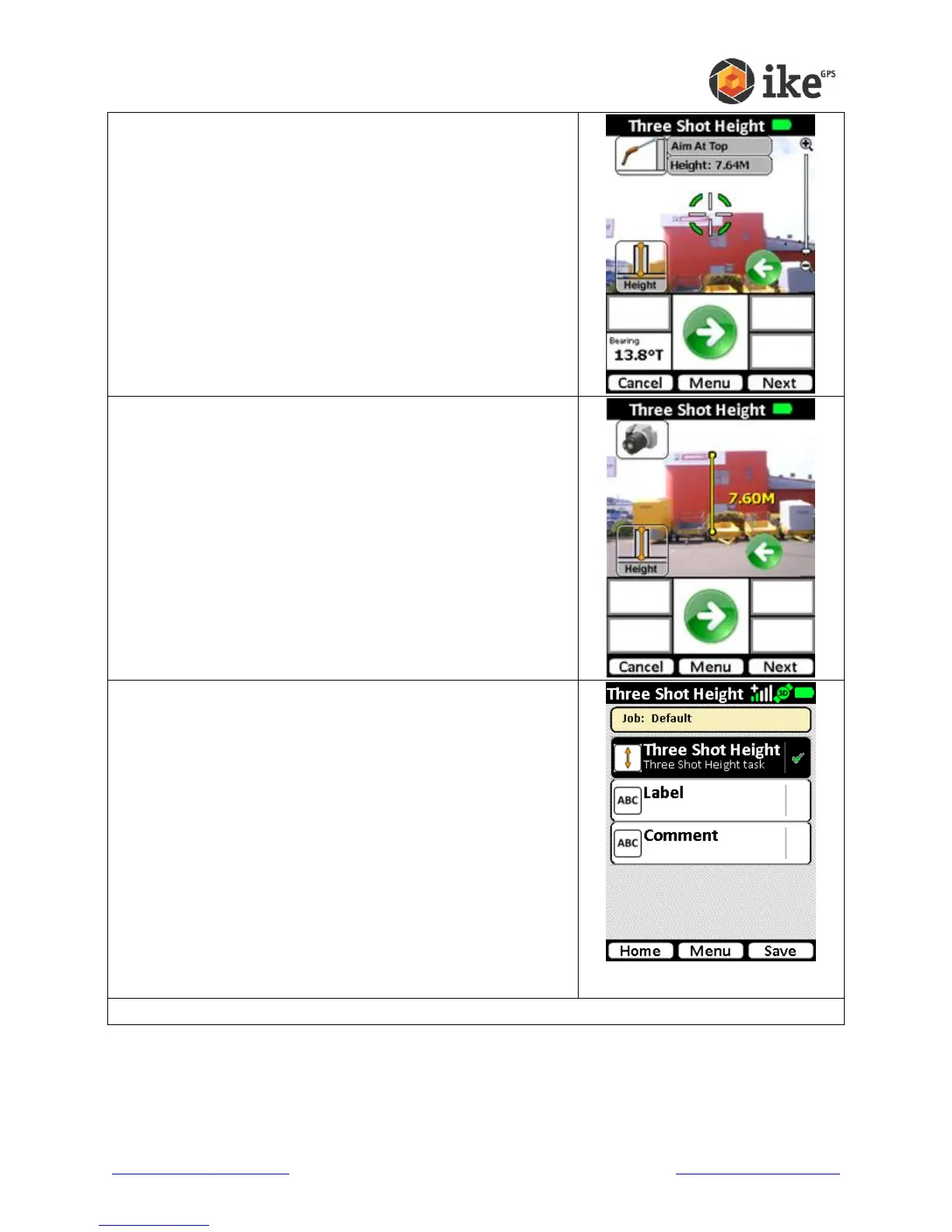 button), retaken (tap Three Shot Height again to delete the
