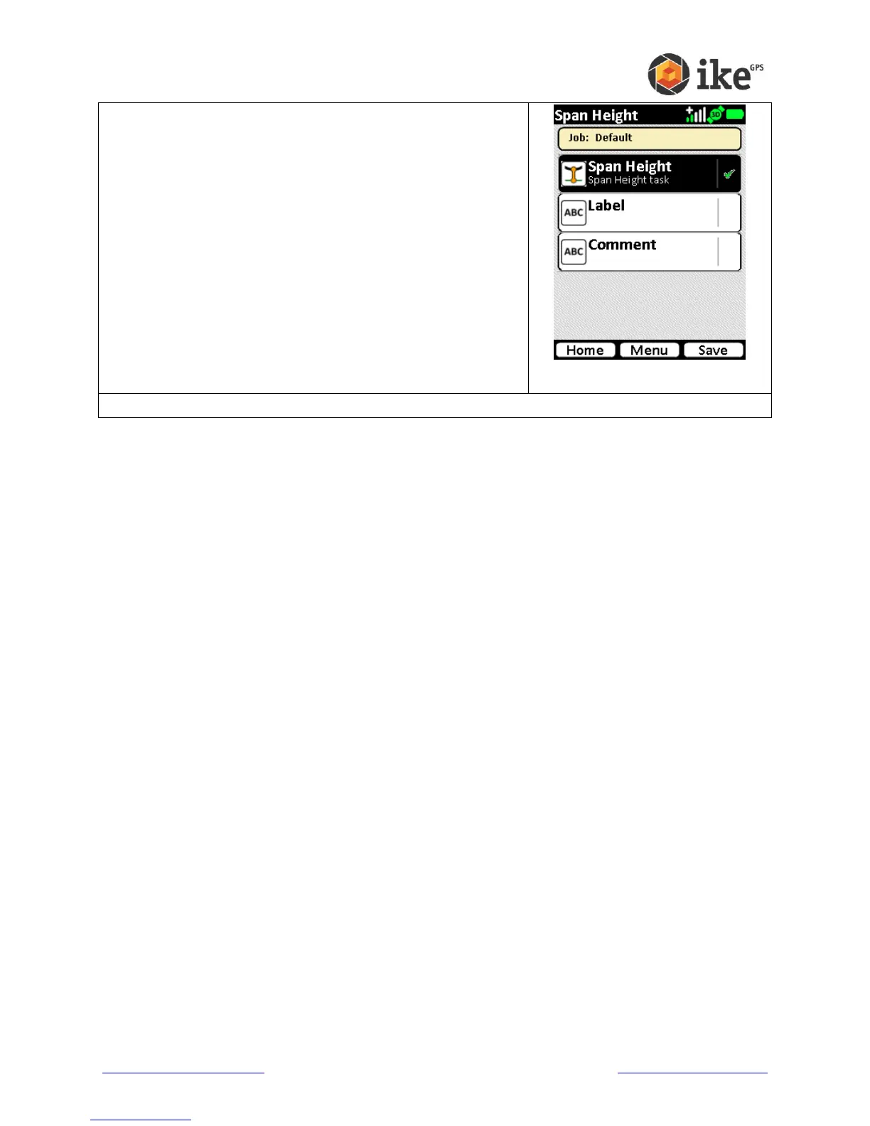 will revert to the Span Height selection screen. Where there