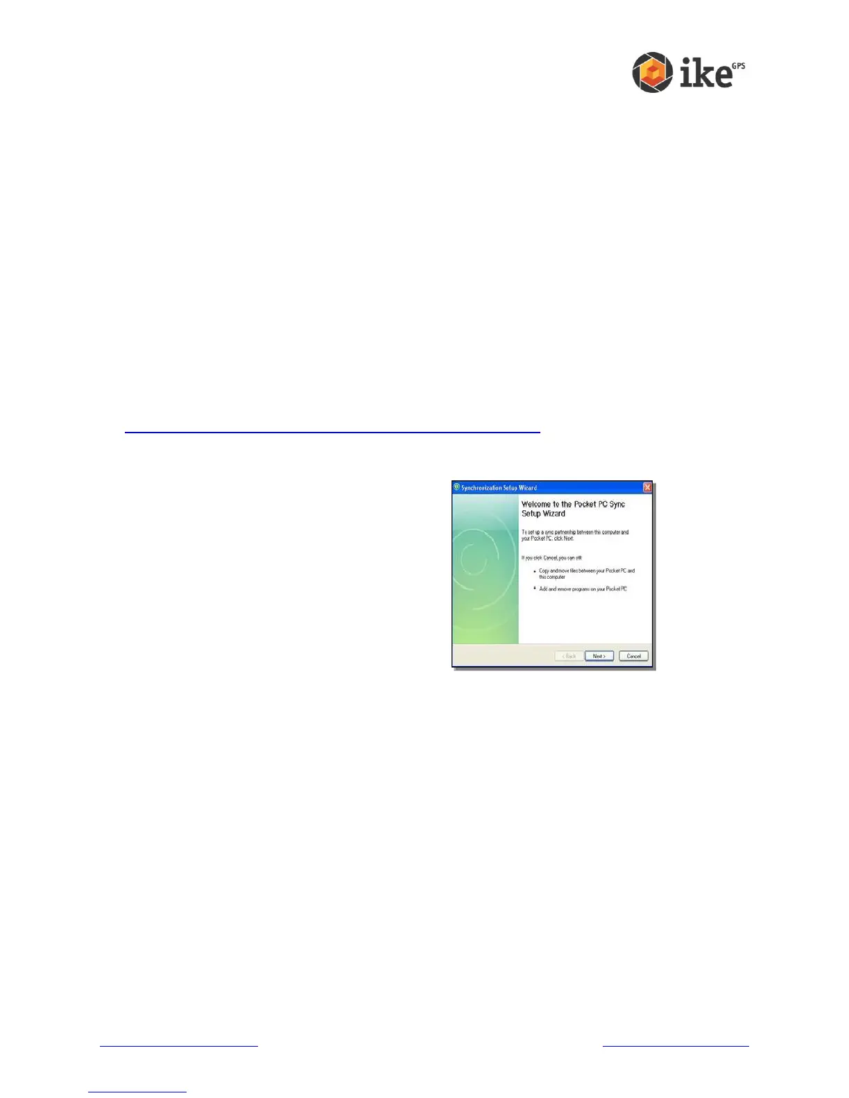 Note: Install ActiveSync before attaching the USB cable to the desktop or ike.