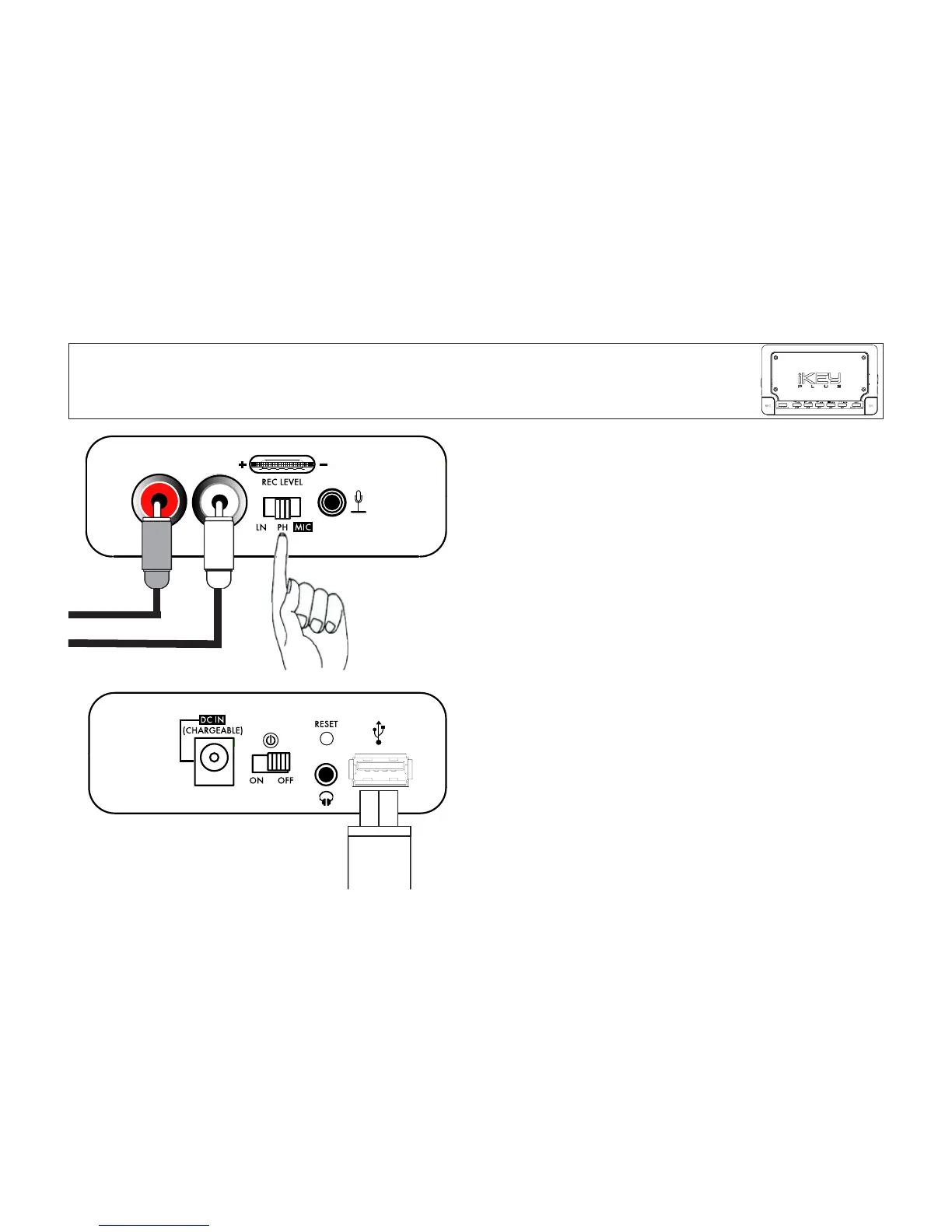 Si está grabando en nivel LINEA, ajuste el interruptor a LN