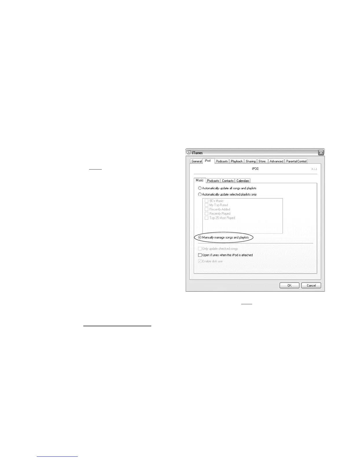 l’iPod (Dans iTunes) afin d’éviter toute mise à jour automatique des fichiers musi-