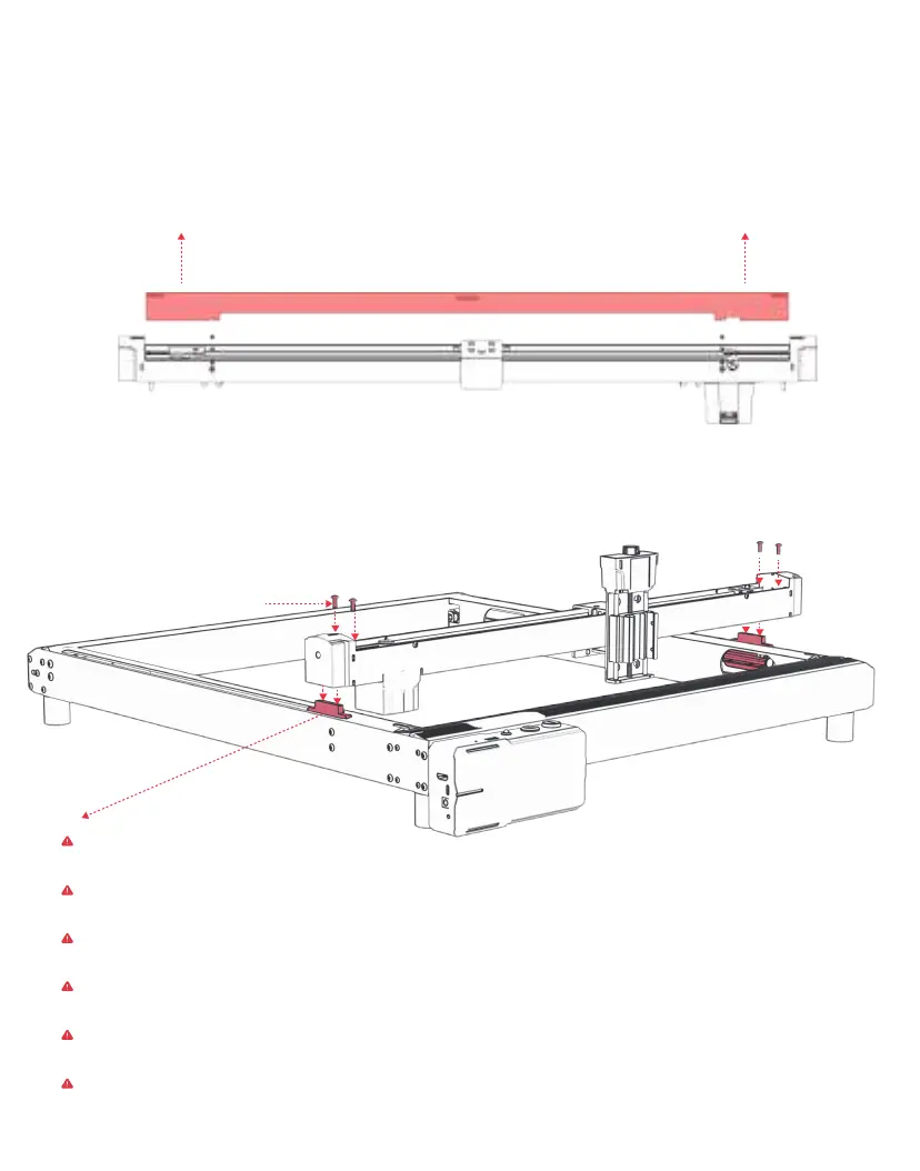 FR: Retirer le couvercle supérieur de l'axe X RU: Снимите верхнюю крышку оси X