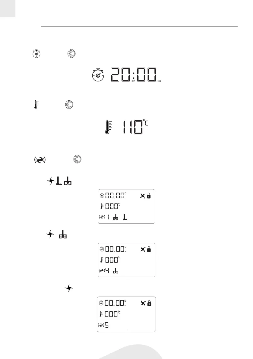 speed is shown on display like below. During heating: only speed 1~3 is available.