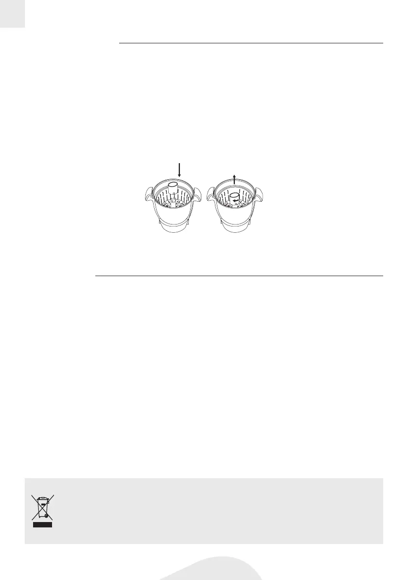 6. How to take out steam basket: Put mearsuring cup into steam basket slot and rotate to x. Then, take out.