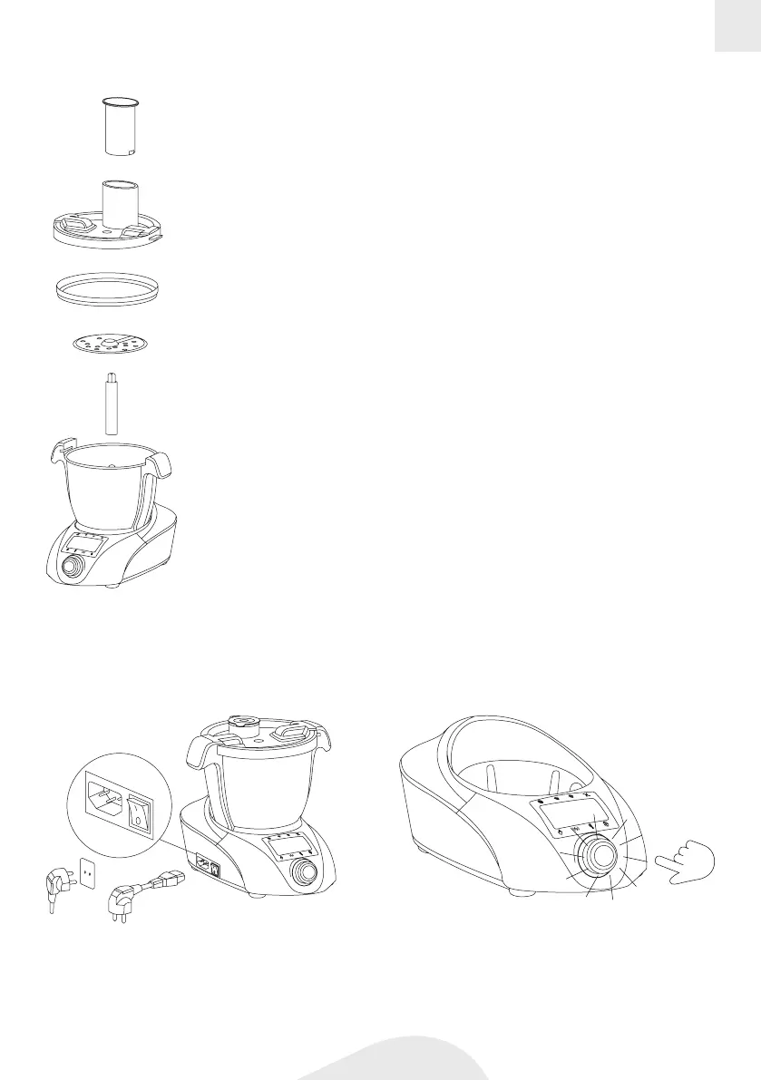 1. Conecte o cabo de alimentação à base principal e a uma tomada. Ligue a unidade.
