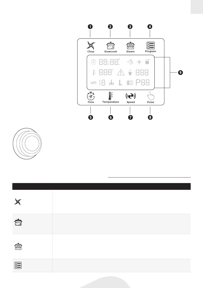 1. Può essere utilizzato per regolare temperatura, tempo, velocità o selezionare un altro programma.
