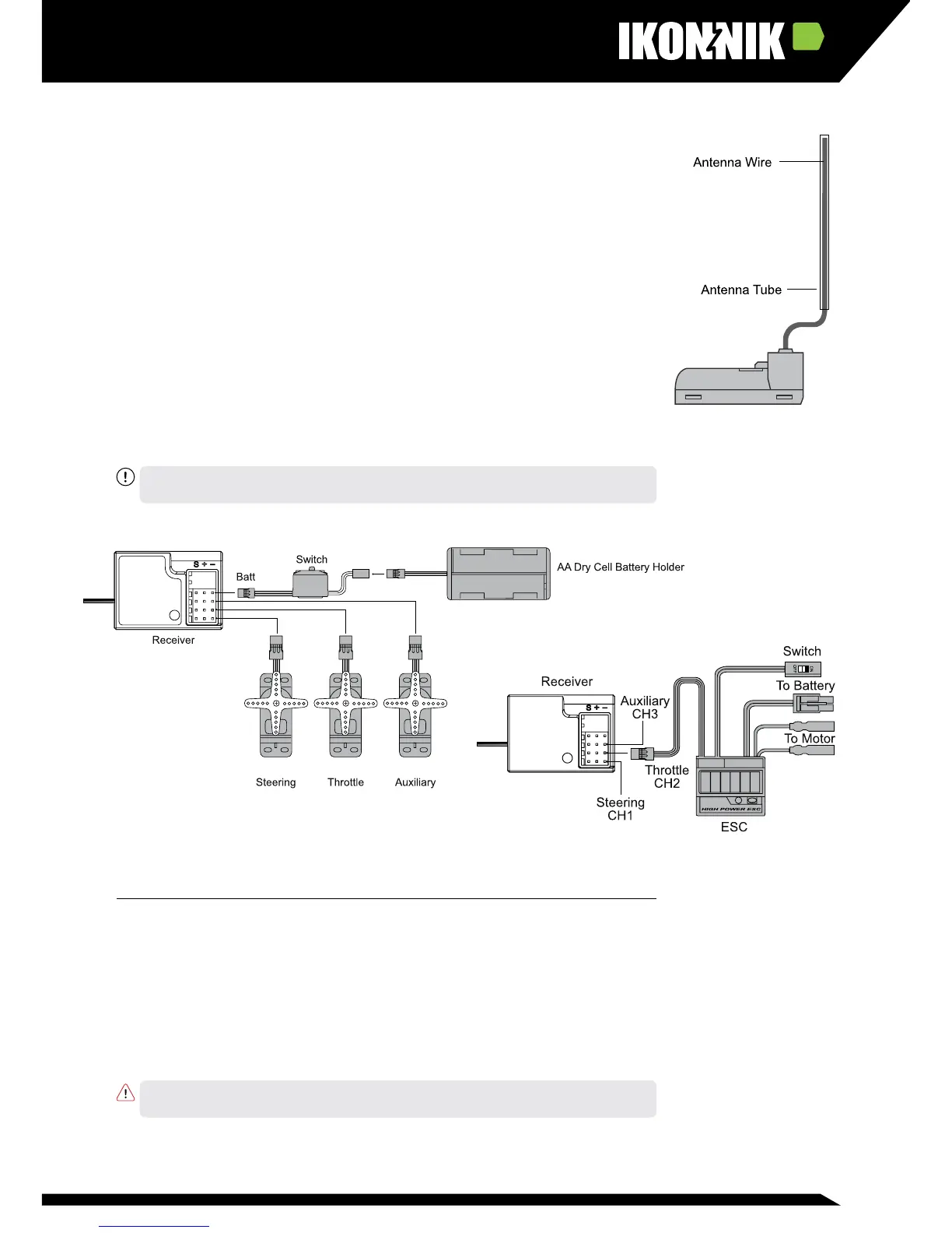 Channel 2: Controlled by the trigger, connect to the ESC or a servo