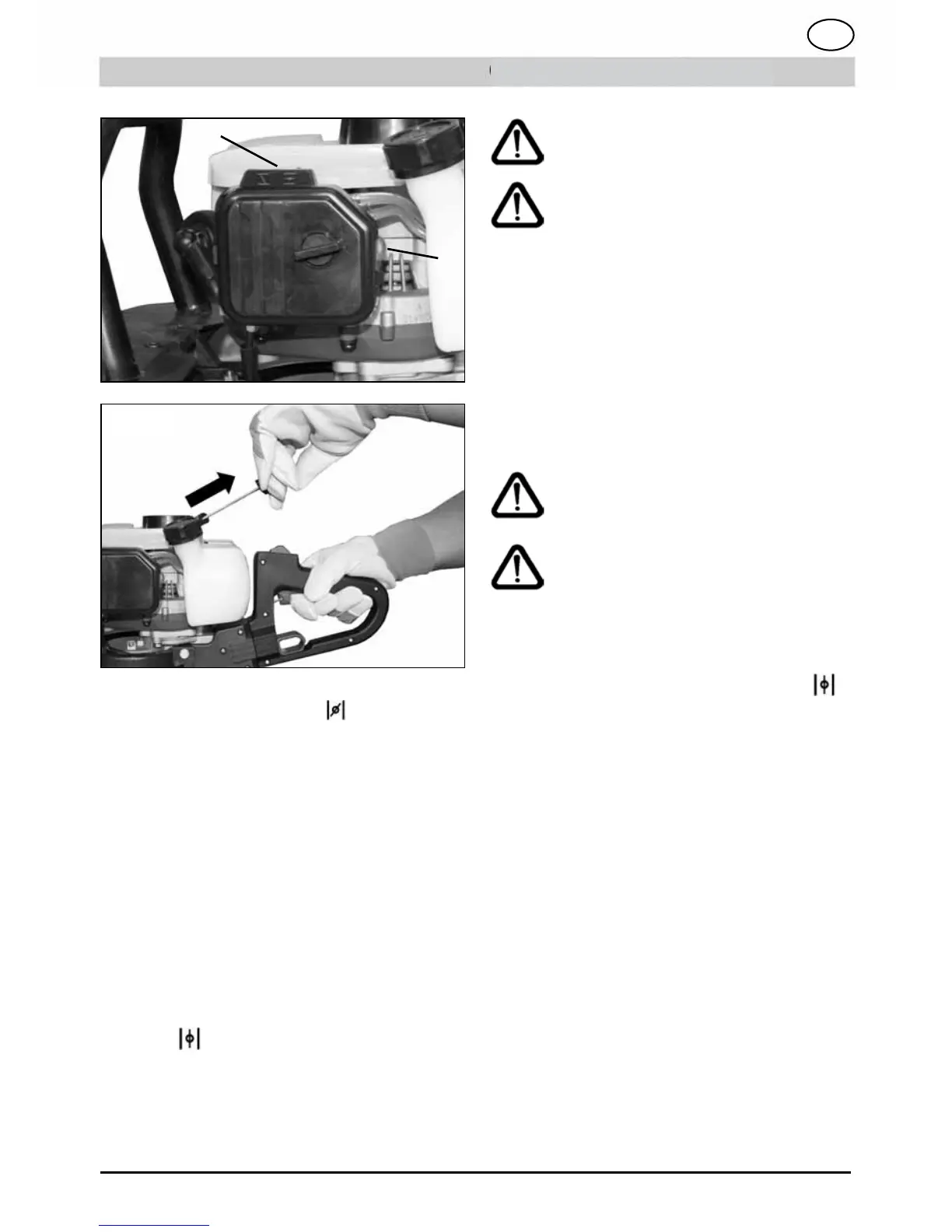 NB! Træk ikke startsnoren for langt