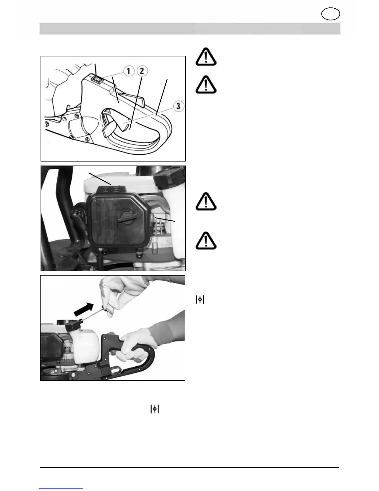 9) Pull the starter cable (g. 13) until the