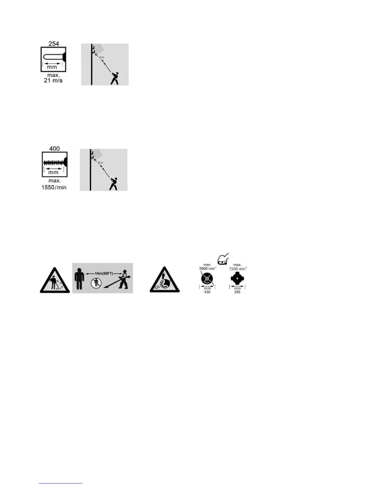 15. Maximale Drehzahl der Schneidvorrichtung. Verwenden Sie ausschließlich geeignete Schneidvorrichtungen.