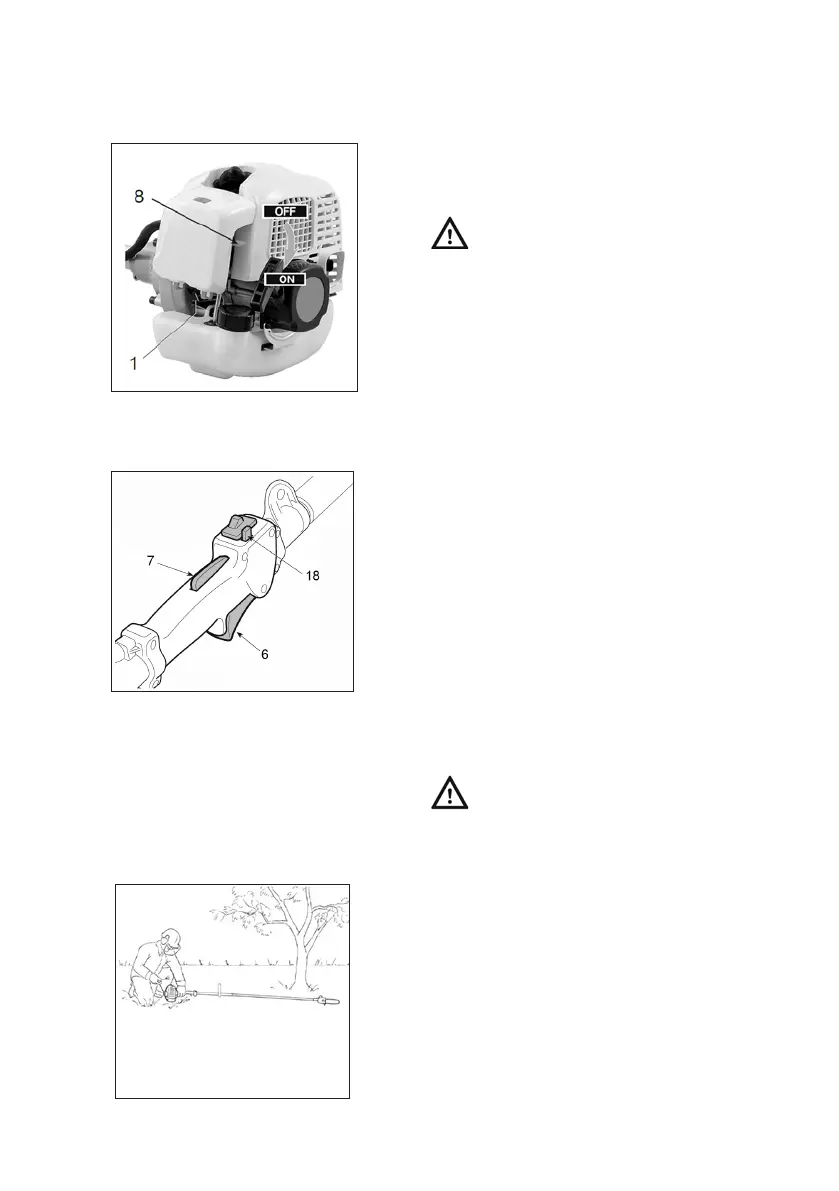 4 Den Sicherungshebel (7) drücken, den Gashebel (6)