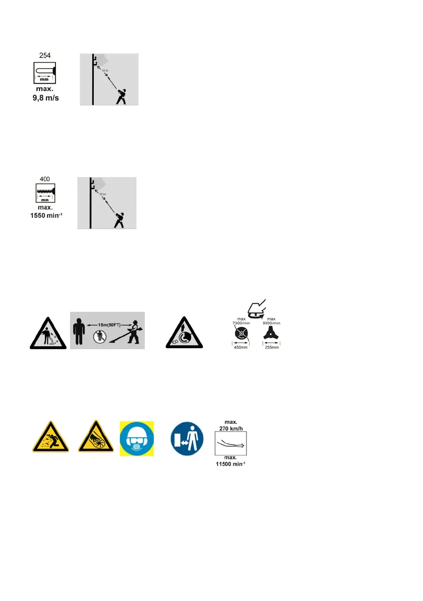 3. Vitesse maximale du dispositif de coupe. Utilisez uniquement des dispositifs de coupe appropriés.
