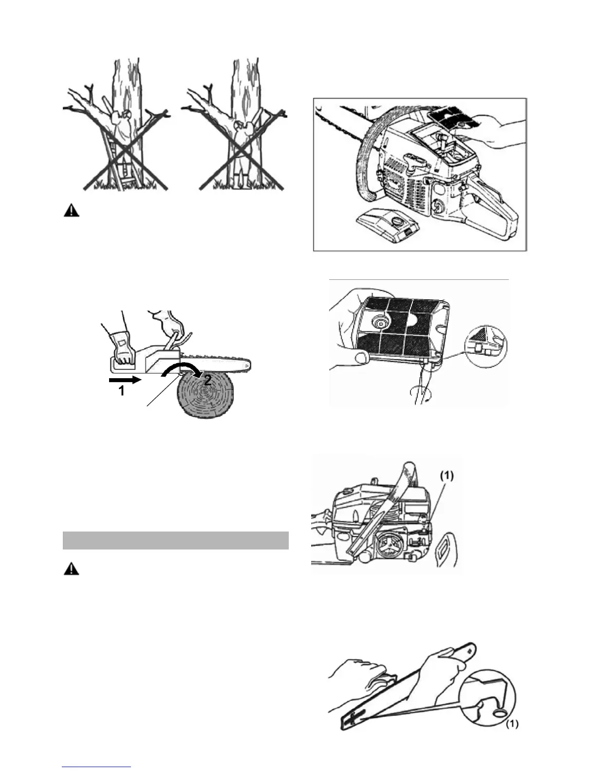 the chain saw on tree trunk. Push the spiked bumper