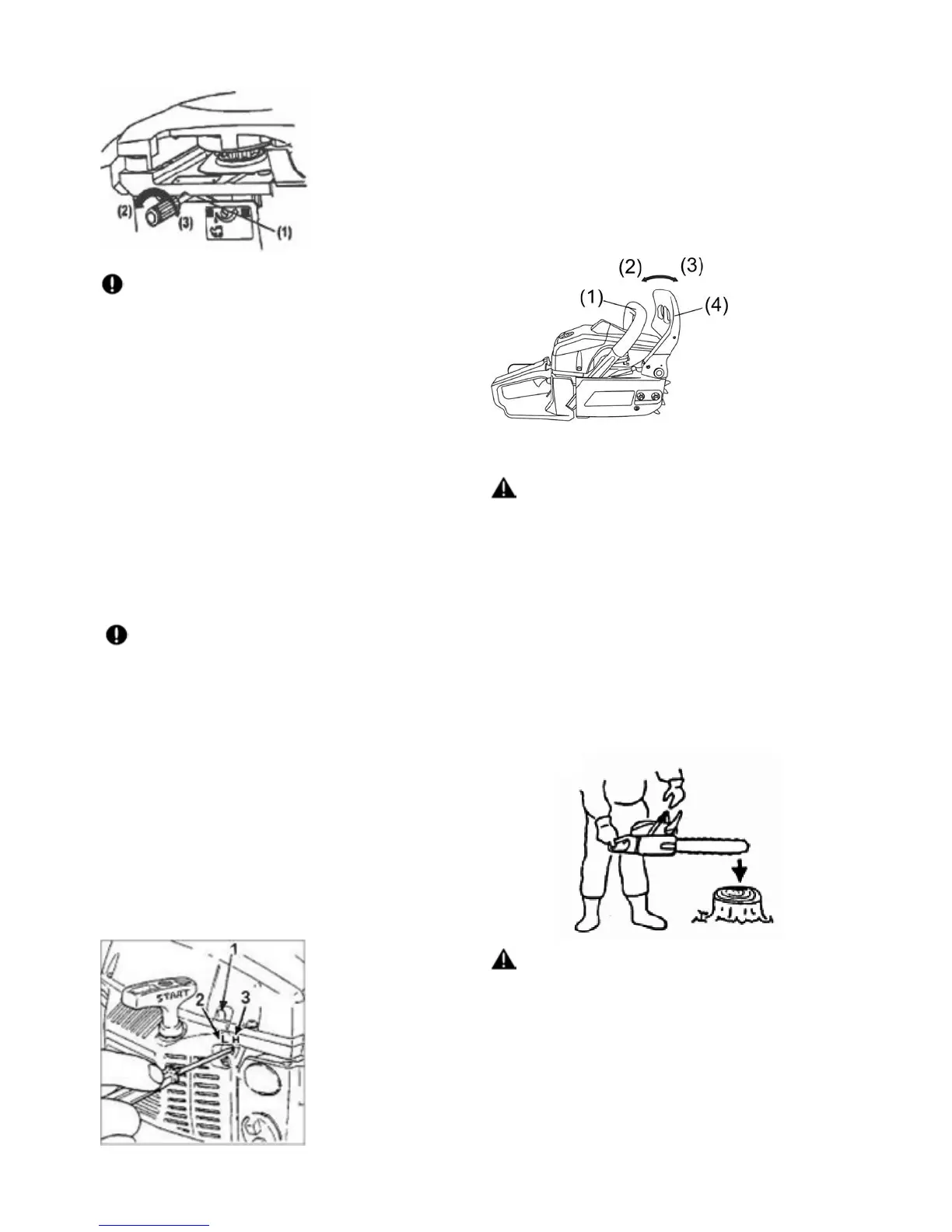 2. En tenant la tronçonneuse horizontalement, relâchez