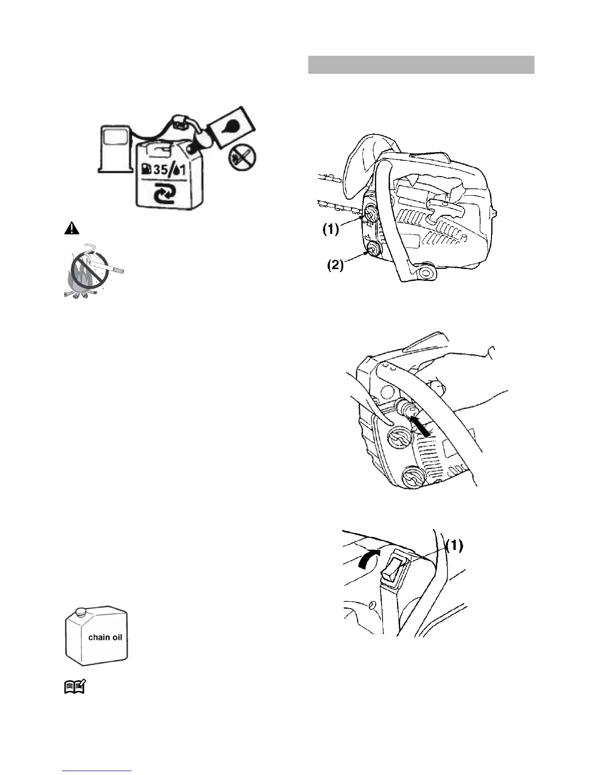 1. Τοποθετήστε καύσιμο και λάδι αλυσίδας στα ξεχωρι-