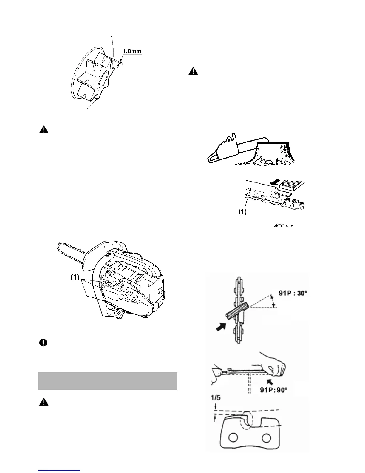 • Assurez-vous que la chaîne de la scie est maintenue
