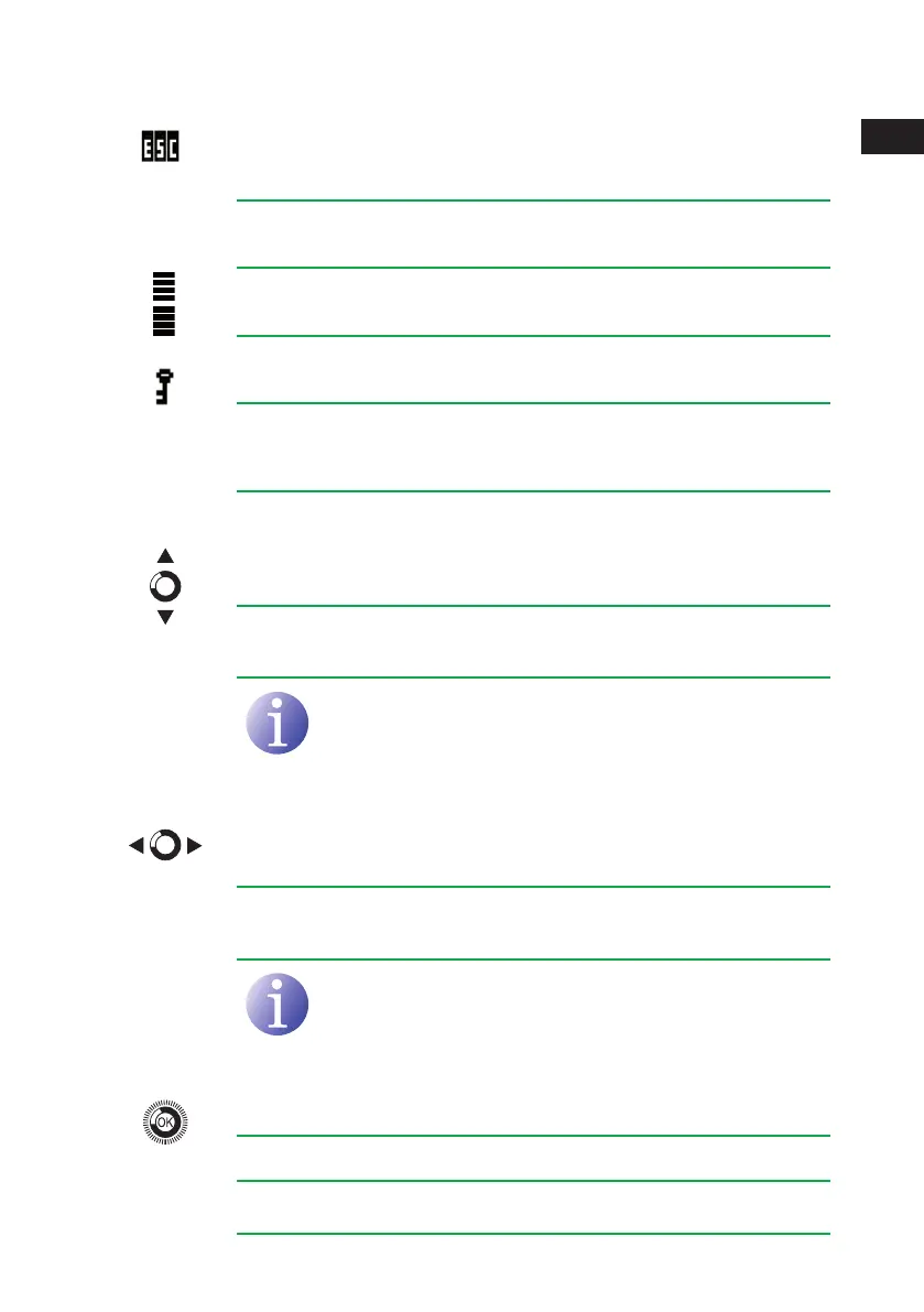 Keep the button pressed up or down to browse or to modify