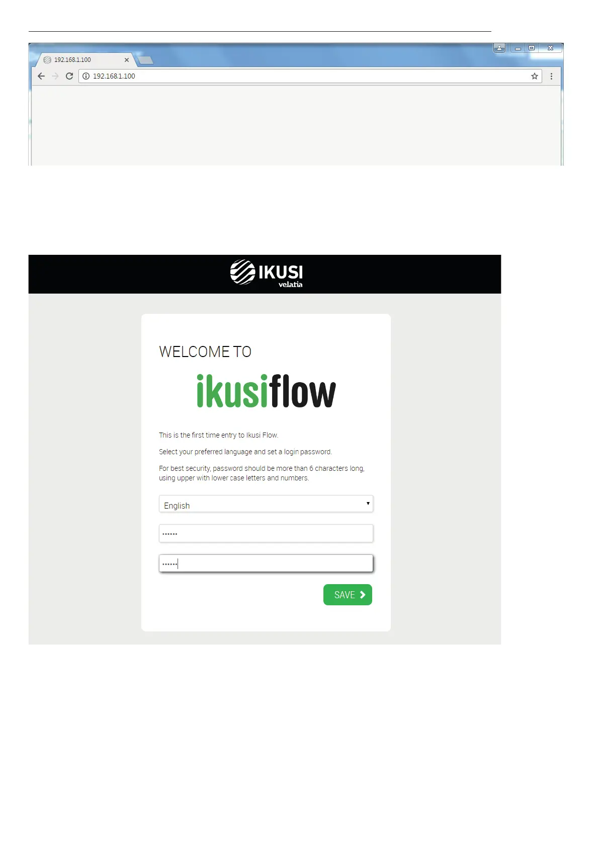 In this first screen, you must choose the desired language for the user interface. You must also define the password that will