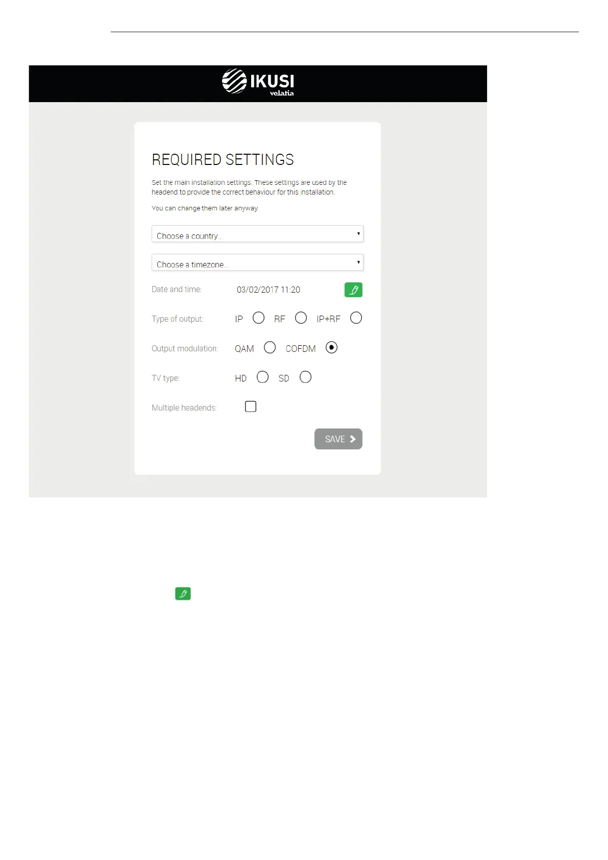 Country: select the country where the headend is installed. In the case the country doesn’t appear in the list, you can select