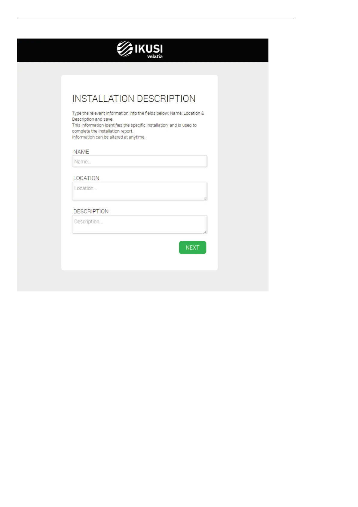 Introduce in this screen the information about name, address and installation description (free text). This information will