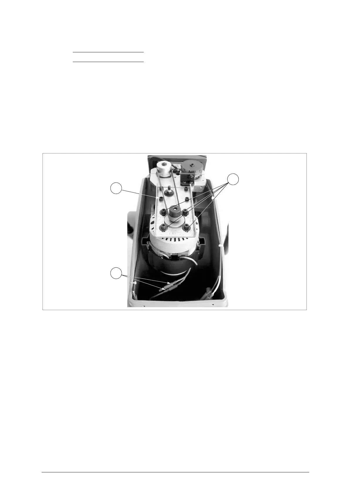 8) tension the belt (pull the motor by hand) so that it is neither too tight or too loose and tighten the 4