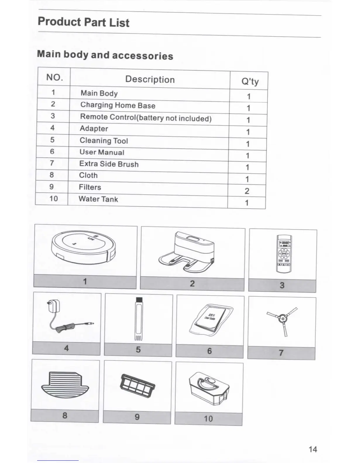 Ilife V7s - Product Part List