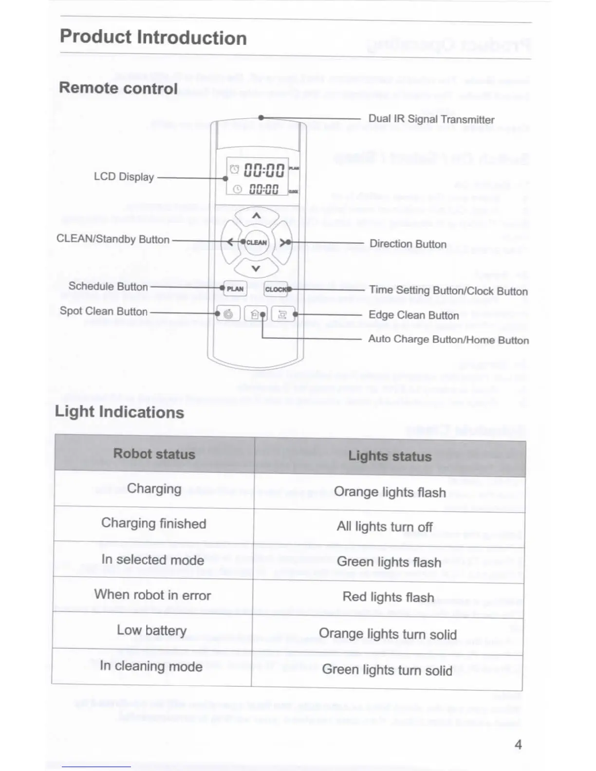 Ilife V7s - Remote control; Light Indications