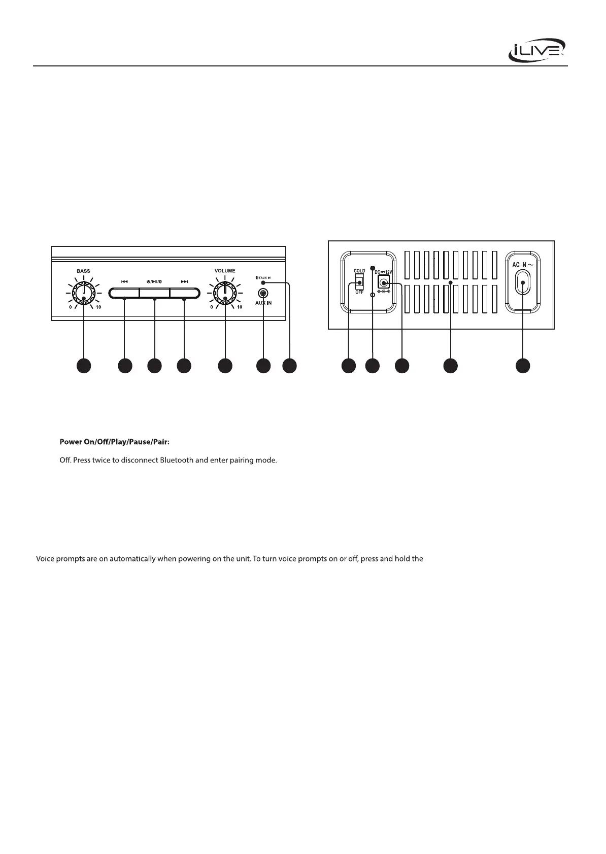 12. AC Power Input: Plug in the AC Power Cord to power the speaker/