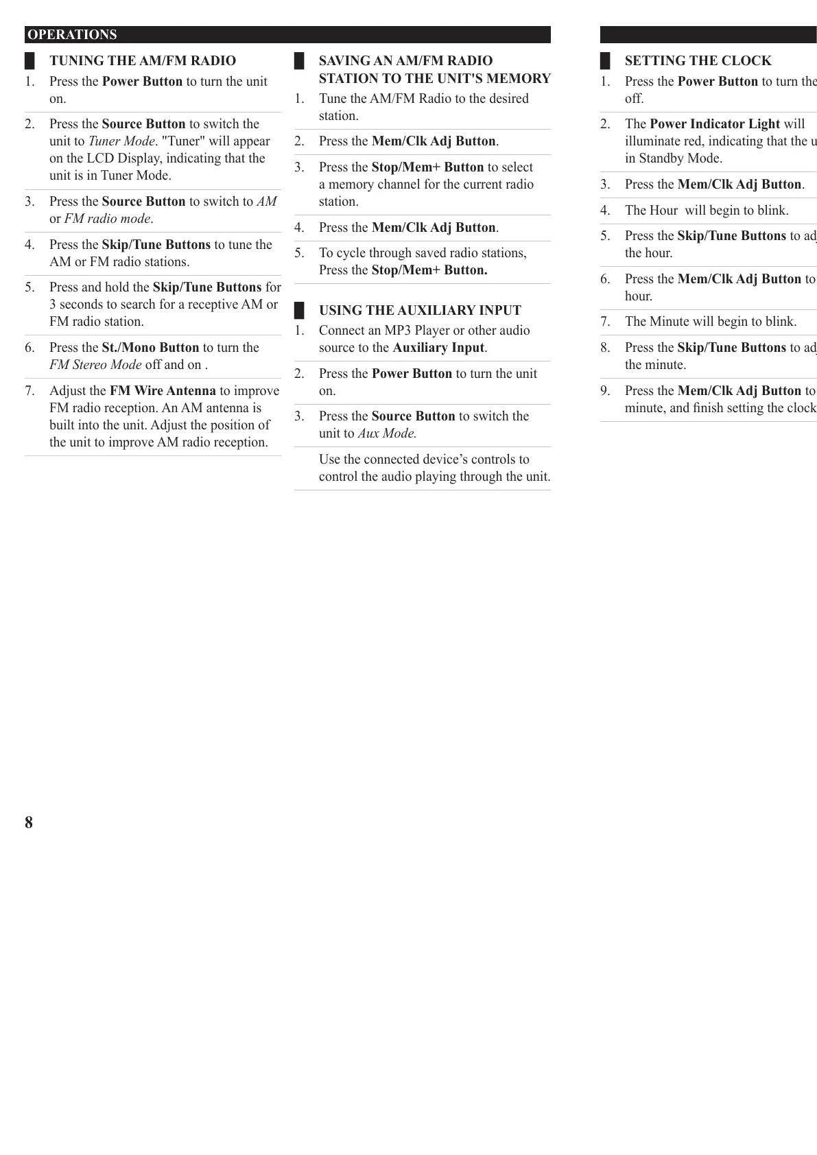 █ TUNING THE AM/FM RADIO